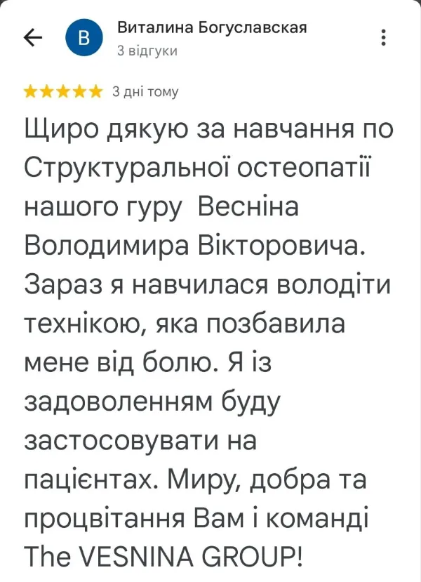 Навчання в школі остеопатії “The Vesnina Group” тепер доступне онлайн!