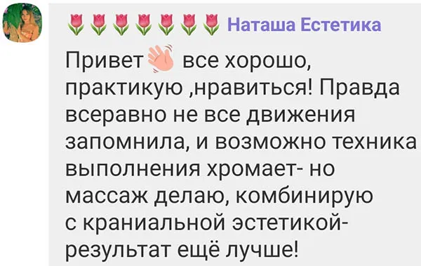 После прохождения учебы вы сможете подобрать гармоничное сочетание разных техник для расслабления клиента и максимального восстановления баланса между душой и телом. Ваш клиент сможет не только расслабиться и избавиться от стресса, но и восстановить физические силы и энергетическое равновесие.