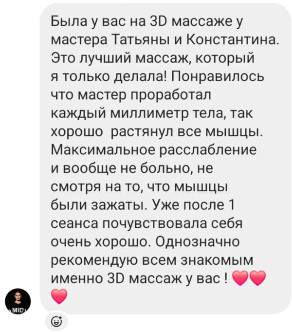 < ПрайсУслуги >Массаж Остеопатия Школа массажа Школа остеопатии Косметология и СПА Психолог, логопед и арт-терапия Видео отзывыОстальные видео-отзывы можно посмотреть на нашем канале Youtube