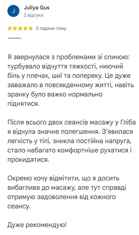 Нет ничего лучше для восстановления сил, снятия стресса и укрепления здоровья, чем лечебный массаж. Даже после первого сеанса у Вас улучшится самочувствие и повысится работоспособность. А после курса массажа уменьшатся или полностью пройдут боли в спине, позвоночнике, суставах и в других частях тела, расслабятся и восстановятся мышцы, усилится иммунитет организма. Читать далее…