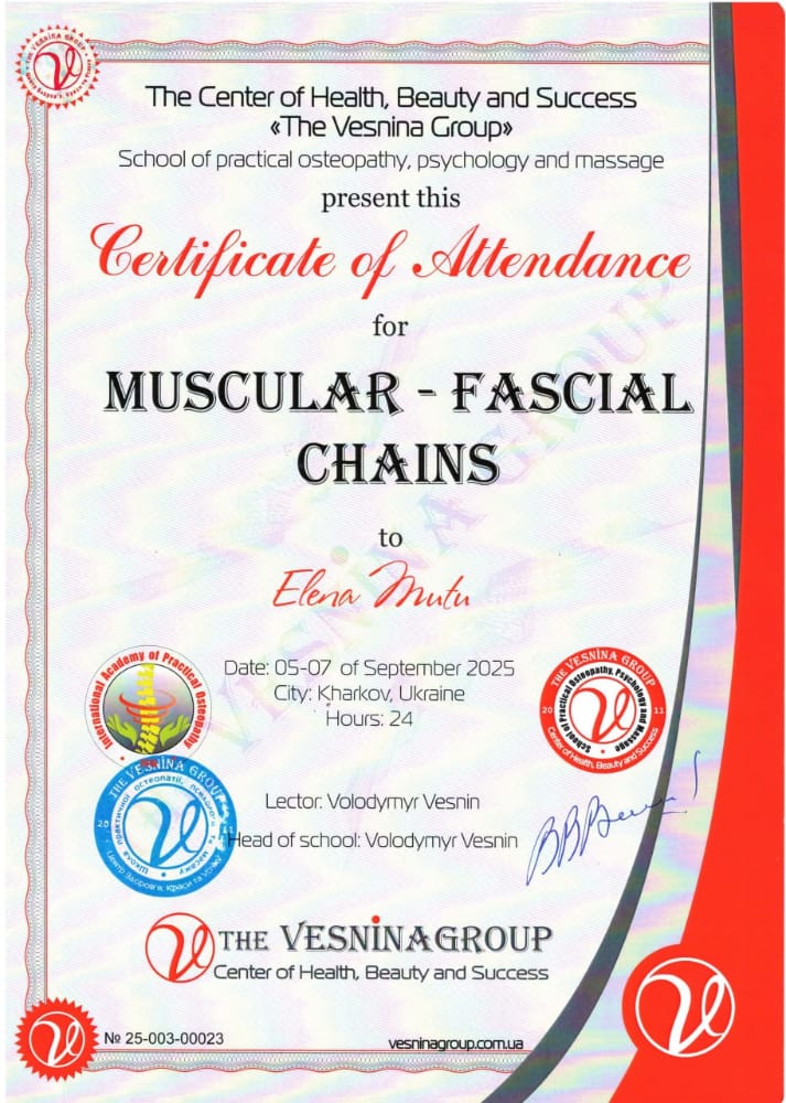 Меня зовут Муту Елена и я — эксперт в мире красоты и здоровья с европейским опытом работы более 5 лет. Моя миссия — помогать людям чувствовать себя спокойнее, легче, свободнее, раскрывать естественную тела и чувствовать себя гармонично.