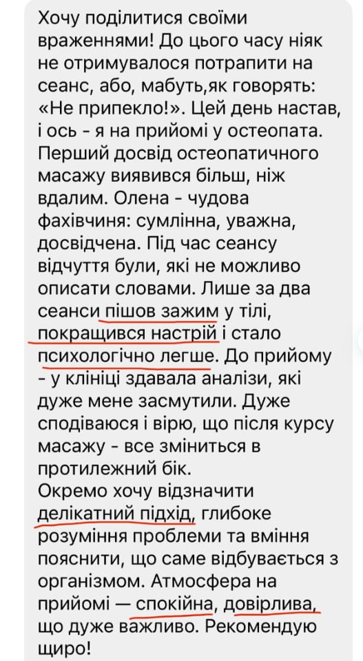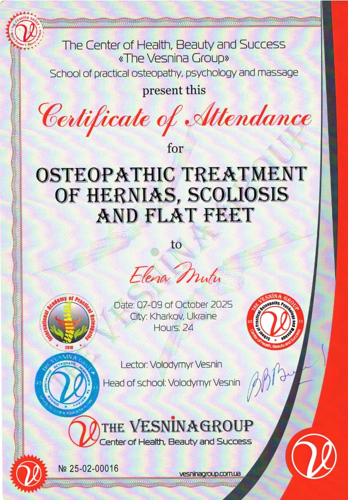 - Специалист по висцеральной и структуральной остеопатии — работаю с телом комплексно, восстанавливая его гармонию и снимаю блоки на всех уровнях.