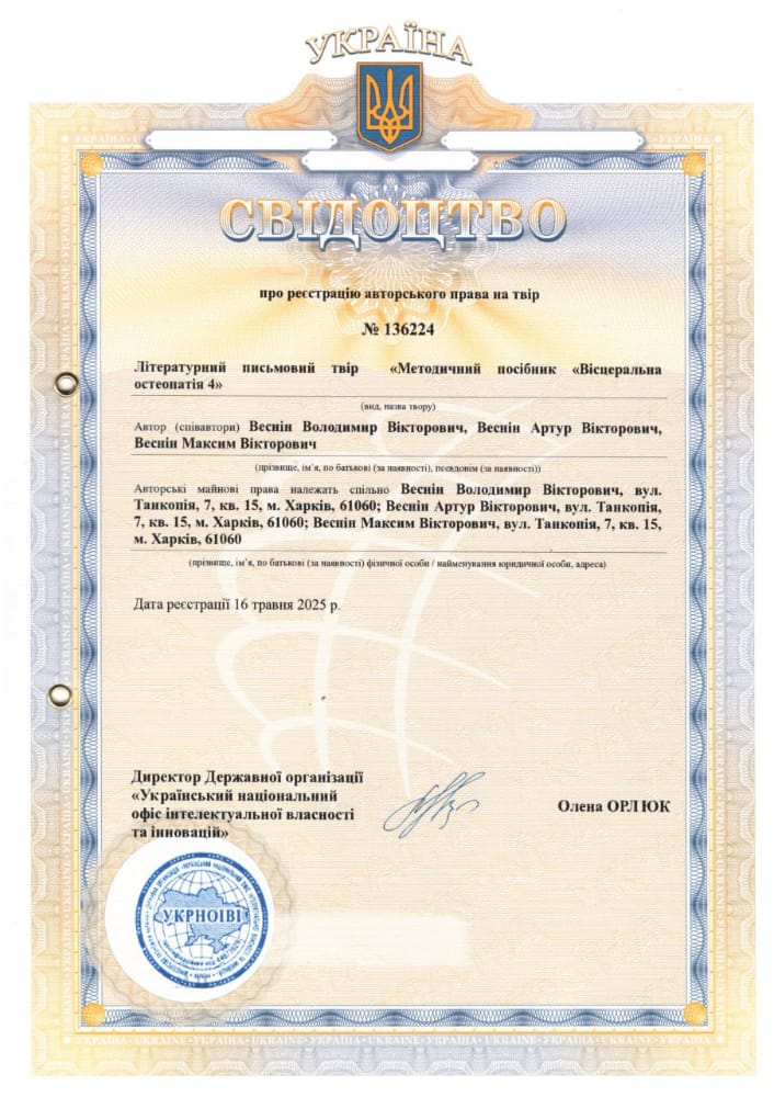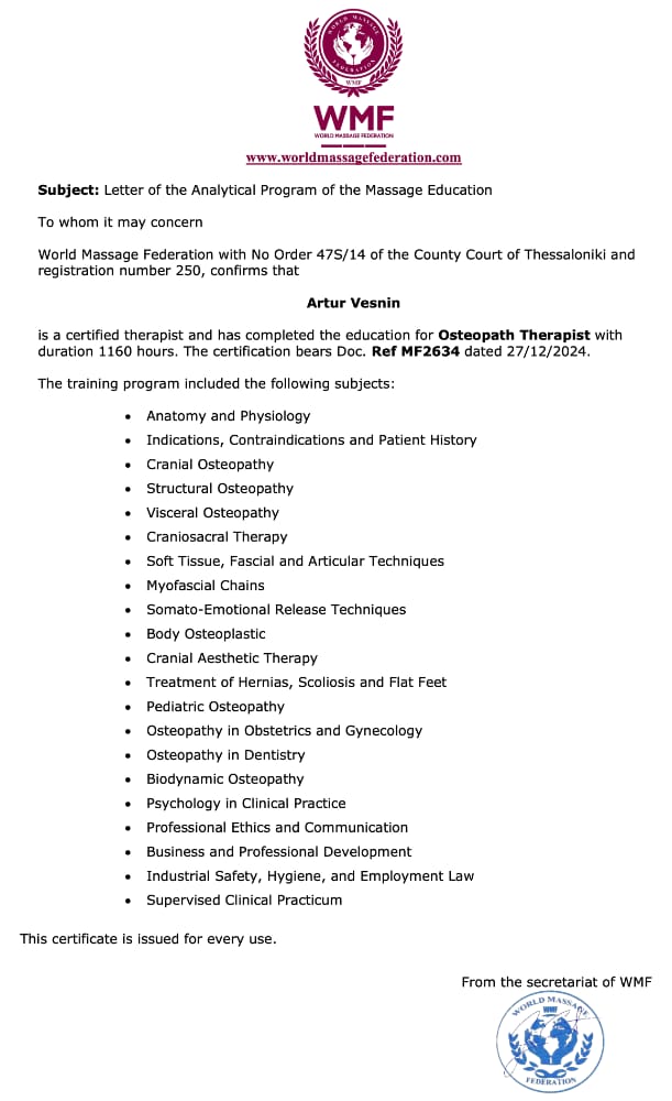 Висцеральный терапевт (Институт Барраля, Высший Остеопатический Институт Лиона)