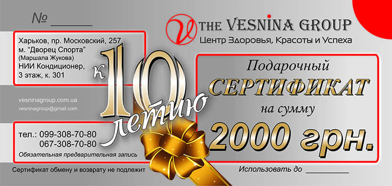 Наш центр здоров’я, краси та успіху «The Vesnina Group» пропонує Вам: